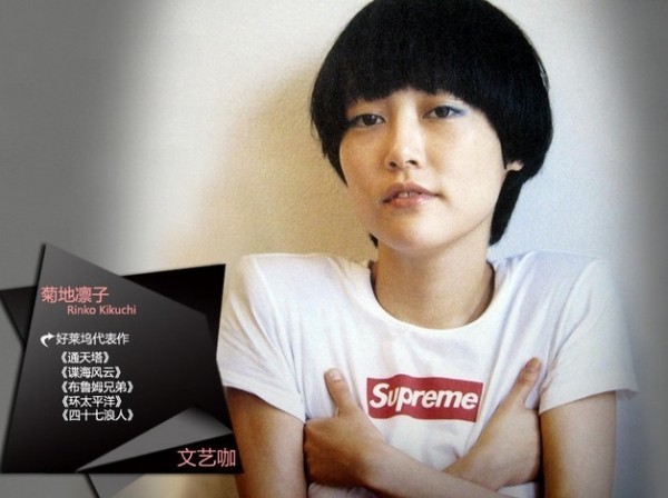 菊地凛子气质独特,一开始被名导新藤兼人相中进入电影圈的原因竟然是不说话,也不会笑。菊地凛子骨子里是个非常文艺的人,她喜欢村上春树,曾努力争取《挪威的森林》中直子一角,而最想演的角色也是《1Q84》中的女主角青豆。