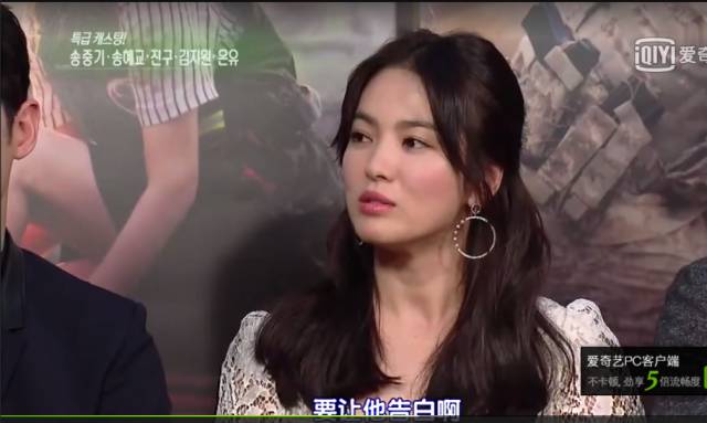 《太阳的后裔》拍完之后,在电视剧刚刚出来后宣传的韩国采访中,主持人问乔妹:如果现实生活中听到剧里面那么甜甜的话你会怎样?