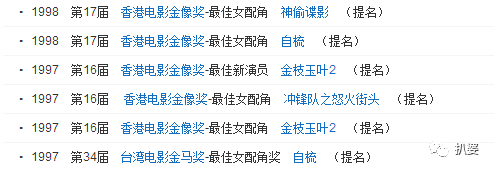 她还因此拿下了香港电影金像奖和台湾电影金马奖提名