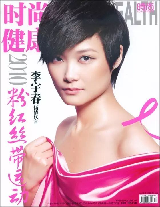 李宇春,2010年代言粉红丝带。同期代言人还有张雨绮、海清、陈怡蓉、唐嫣、杨雪、陈紫函、田中千绘、范志博、江映蓉、况知希、袁乙心。