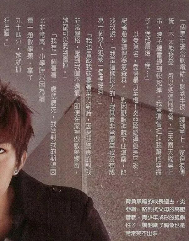 这样的经历可能也就解释得通,为什么炎亚纶那么关心社会新闻,关心这个世界发生的一切不平等与不在乎。