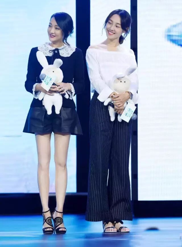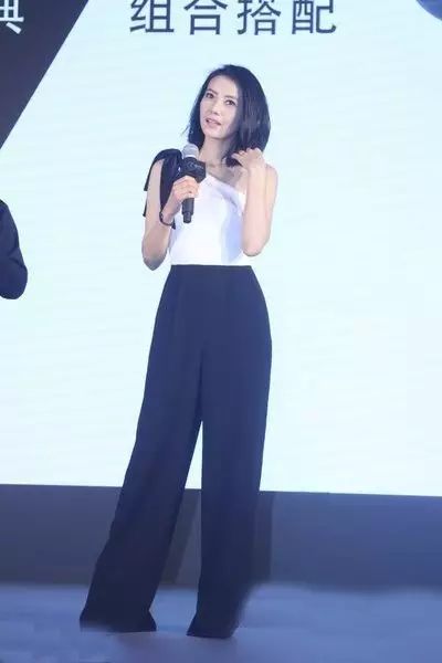 袁姗姗一身白色西装搭配高腰阔腿裤