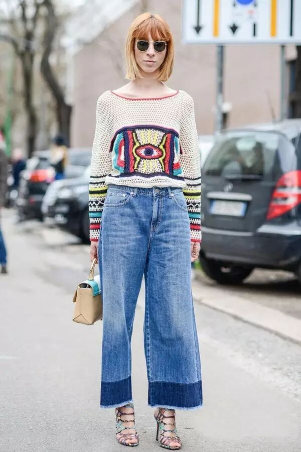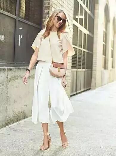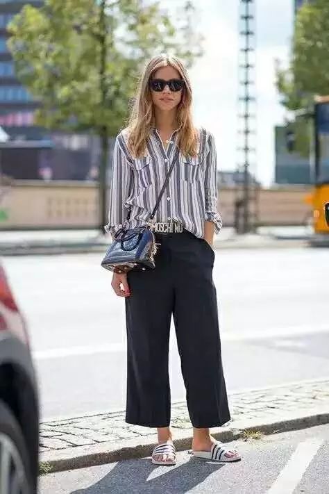 或是可以穿露胃短打搭配中腰的阔腿裤