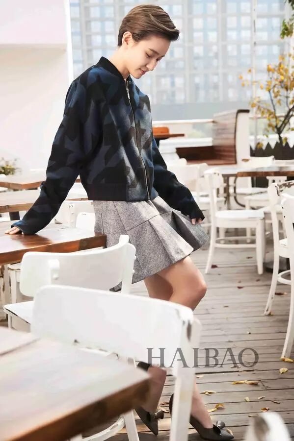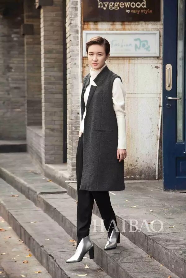 短发的女人仿佛天生就带有一丝率性和大气。奶白色高领毛衣搭配上灰色呢质马甲,行走在街头秒变文艺女青年,如果你以为这就是焦俊艳,那就错了,炮哥怎么能不耍酷呢,加入一双抢眼的银色粗跟鞋,整体风格瞬间率性起来。