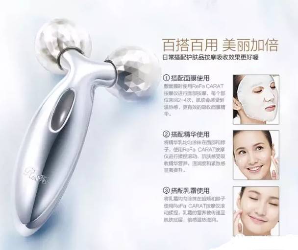 ReFa产生与生物电流相似的微电流,独特的Y字双球形设计,推拉皮肤运动按摩,以达到瘦脸瘦身、提拉紧致的美容效果。
