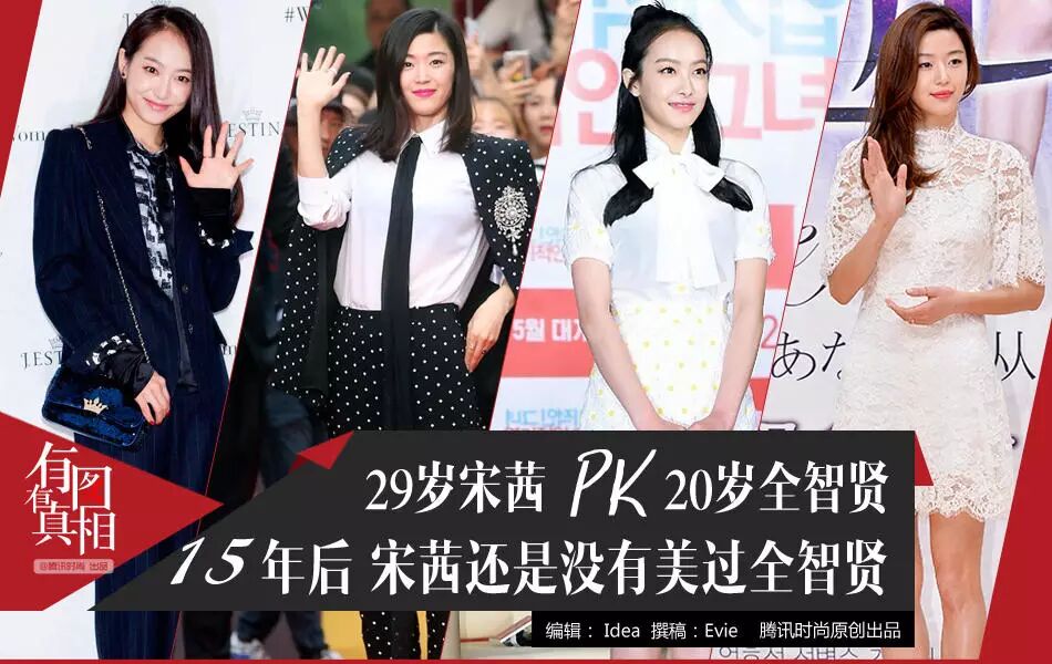 这样清新的白色裙装是女神们的最爱,宋茜和全智贤都演绎过。全智贤的蕾丝裙若隐若现,带点性感的味道。宋茜的行头更甜美一些,扎起的头发也很有俏皮感。