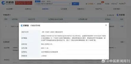 天眼查App显示,近日,北京星台光影文化传播有限公司被北京市朝阳区文化和旅游局罚款5万元。处罚事由显示,该单位在10月14日晚举办“2023大张伟‘大好时光’巡回演唱会-‘又一个NICE’北京站”演唱会期间,存在变更演出举办单位、参加演出的文艺表演团体、演员或者节目未重新报批的违法违规行为,违反《营业性演出管理条例》。