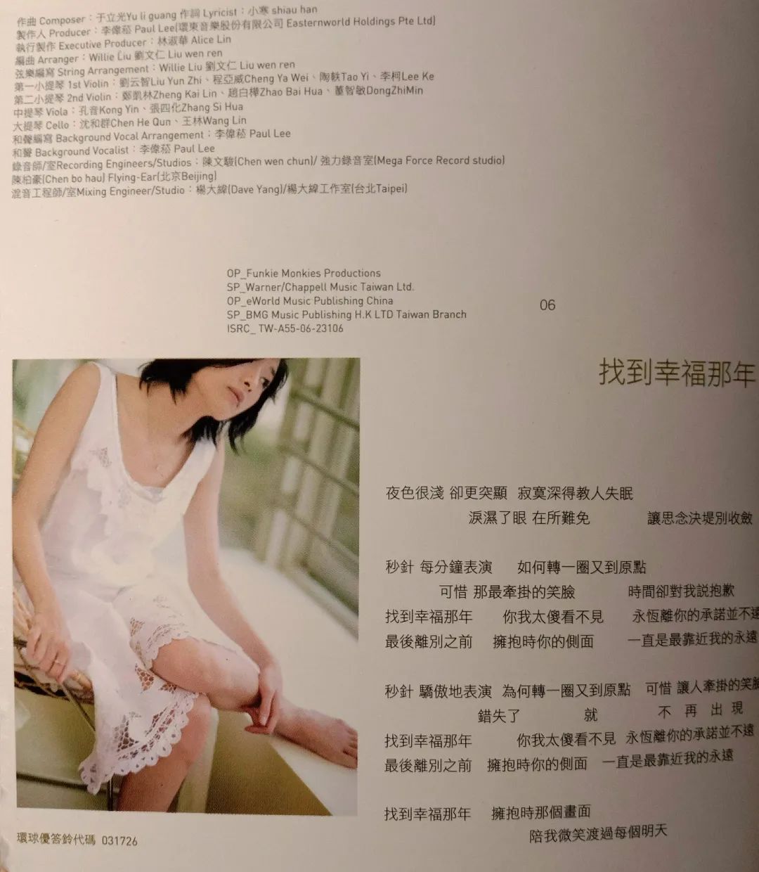 《找到幸福那年》,小寒作词,于立光(现在名字叫于晓光)作曲,刘文仁编曲、弦乐编写,李伟菘制作、和声编写、和声,林淑华执行制作,刘云智、程亚威、郑凯林、赵白桦、董智敏小提琴演奏,孔音、张四化中提琴演奏,沈和群、王林大提琴演奏。于晓光是中国内地影视男演员、流行乐歌手、作曲人,曾是国家一级运动员,练过十年游泳,五年皮划艇,并且多次夺得过全国冠军。2002年初,于晓光在机缘巧合之下由广州赶至深圳参加了由深圳广电集团主办的第二届“青春之星”大赛,夺得总冠军。2004年,于晓光出演个人首部电视剧《我的功夫女友》,从而正式进入演艺圈。于晓光原本以为这是梦想的开始,却不曾想在毕业后接受的都是现实的残酷。由于经纪公司的原因,于晓光失去了不少机会,而当他决定解约时,又被身边的朋友欺骗,那段时间是于晓光最难熬的时候。尽管坎坷不断,但于晓光却从未想过放弃。2006年,他主演剧情电影《旗鱼》。此外,于晓光远赴新加坡拜师李伟菘后,专心学习音乐创作,苏慧伦的《找到幸福那年》是于晓光的第一部作品。2007年,他为张靓颖演唱的歌曲《我们说好的》作曲,并凭借该歌曲入围北京流行音乐典礼最佳作曲人奖,于晓光的妻子相信大家应该都认识,是韩国女演员秋瓷炫。有些时候,幸福不是靠等待的,而是需要自己去慢慢找寻的,这是一个漫长的过程,或许那个人就在灯火阑珊处等着你,你众里寻他,或许一个眼神的交汇就可能注定了你的幸福,也或许你会找不到,但是时间会教给你,所以你要把握住机会,那个她,你在等我吗?