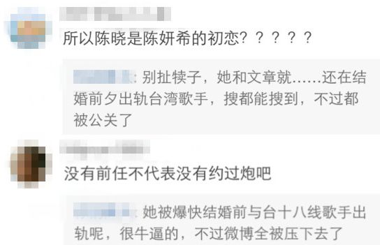还有些不怕事儿大的说陈妍希在和陈晓恋爱之前,曾经被拍到和文章有一张比较亲密的片场照。