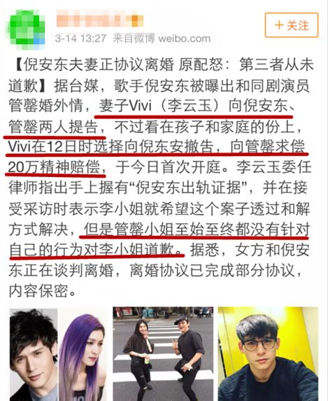 当然陈妍希的粉丝也不是吃素的,他们也开始反击,首先且不说陈妍希已经否认,倪安东老婆那边的诉求一直都是希望管罄能够赔偿精神损失费。