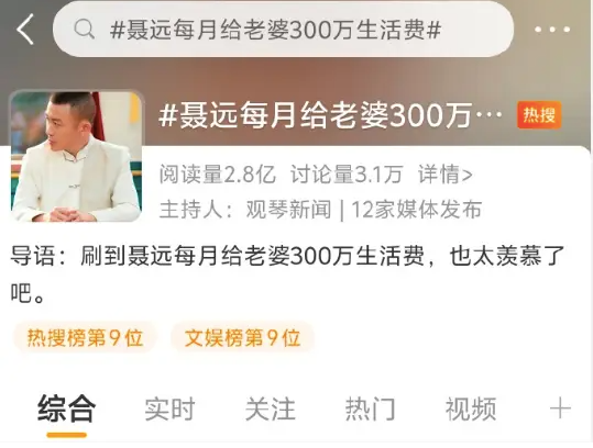 这300万与其说是生活费,青年君觉得是薪酬更合适,全职太太也该有工资呀。从这个角度来看,聂远做的很不错。