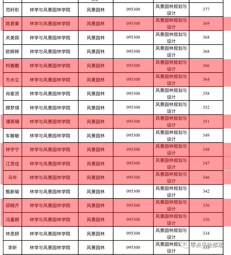 三、2015年学员录取名单 (华南农业大学风景园林录取15个,8个来自零点)