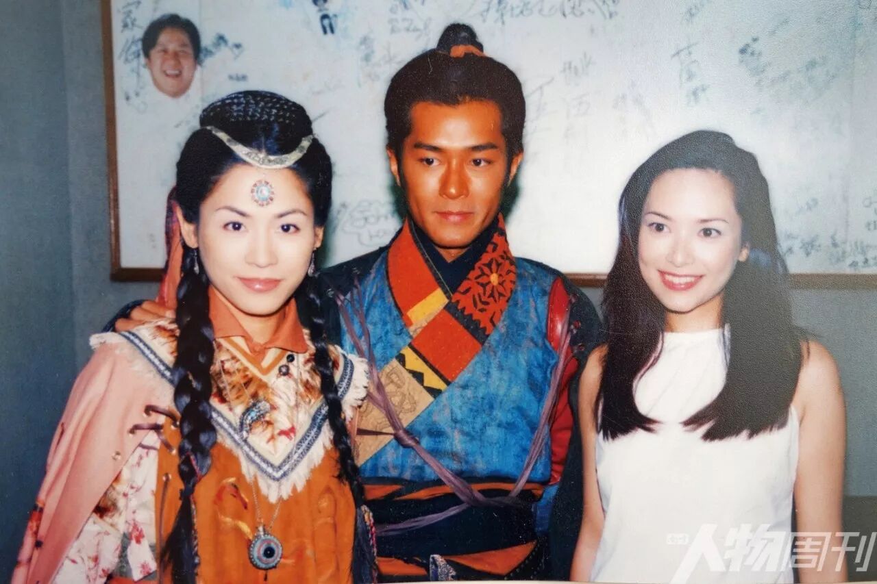 2001年,宣萱( 左)与古天乐 ( 中)、郭羡妮合作《寻秦记》