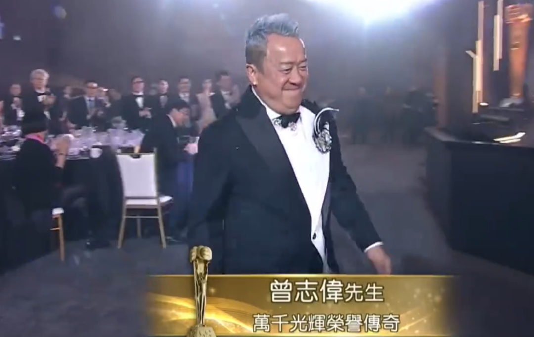 在TVB颁奖典礼上,曾志伟获得“万千光辉荣誉传奇奖”,谭咏麟为他颁奖。