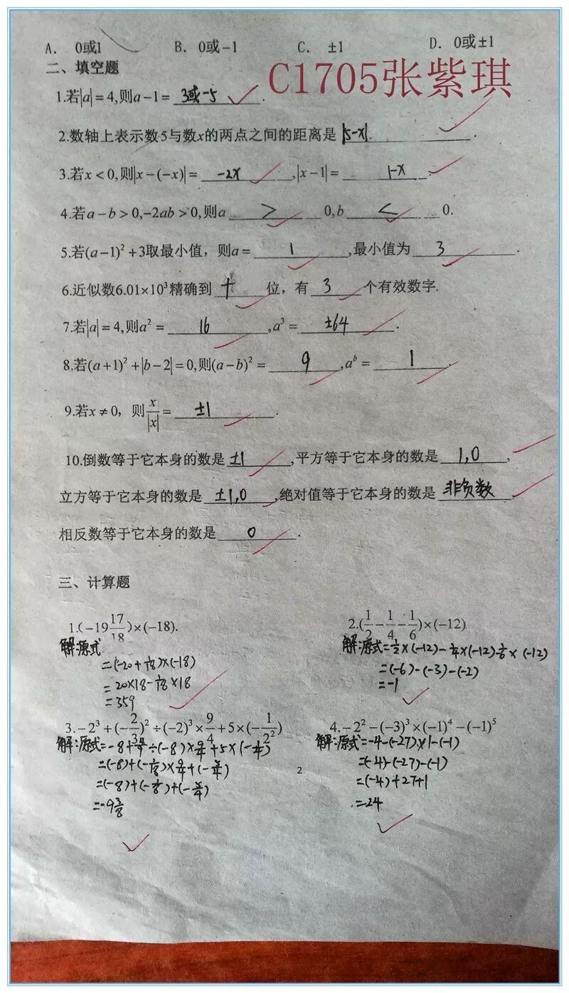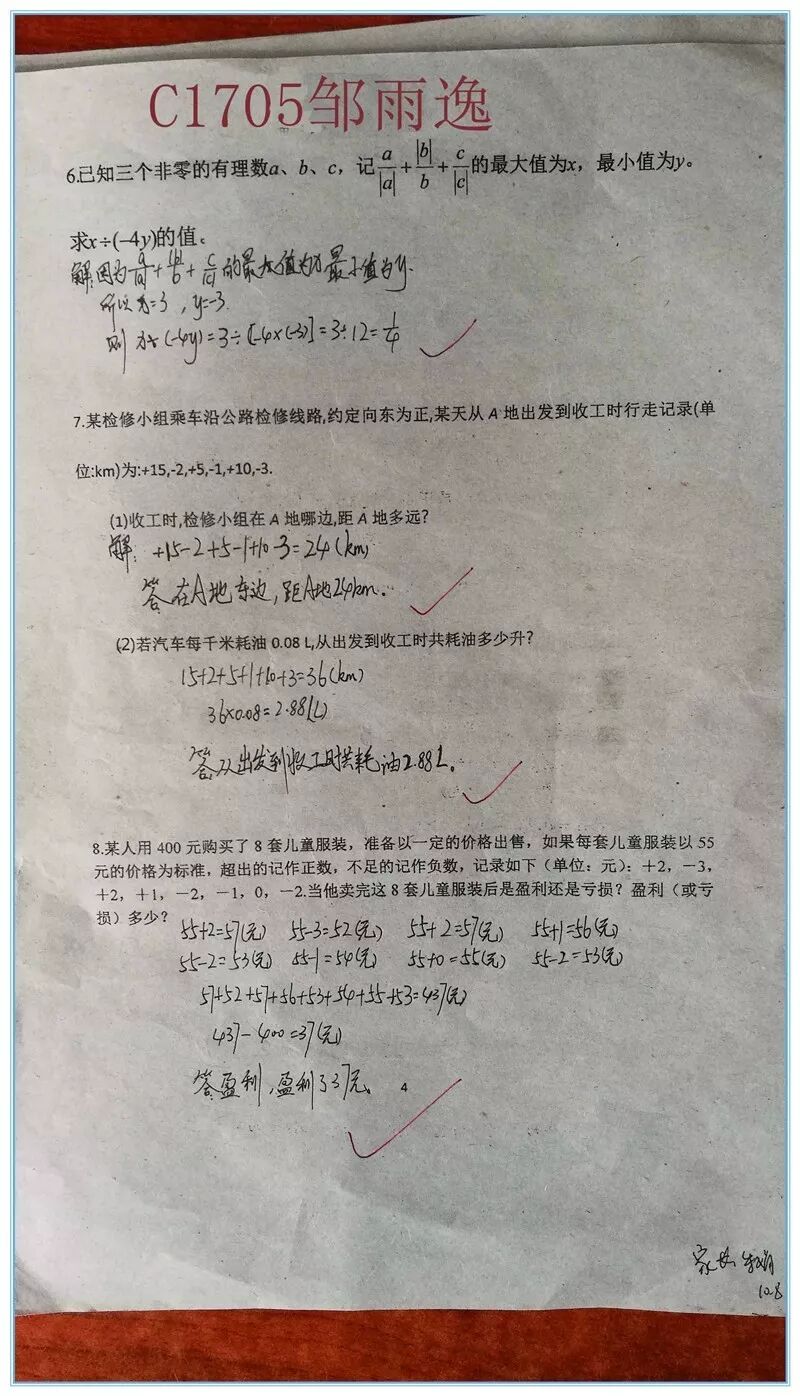 1704班 试卷:张楚佳、沈语薇、张芷菡、刘雨晴、黄嘉琪、郭宇奇