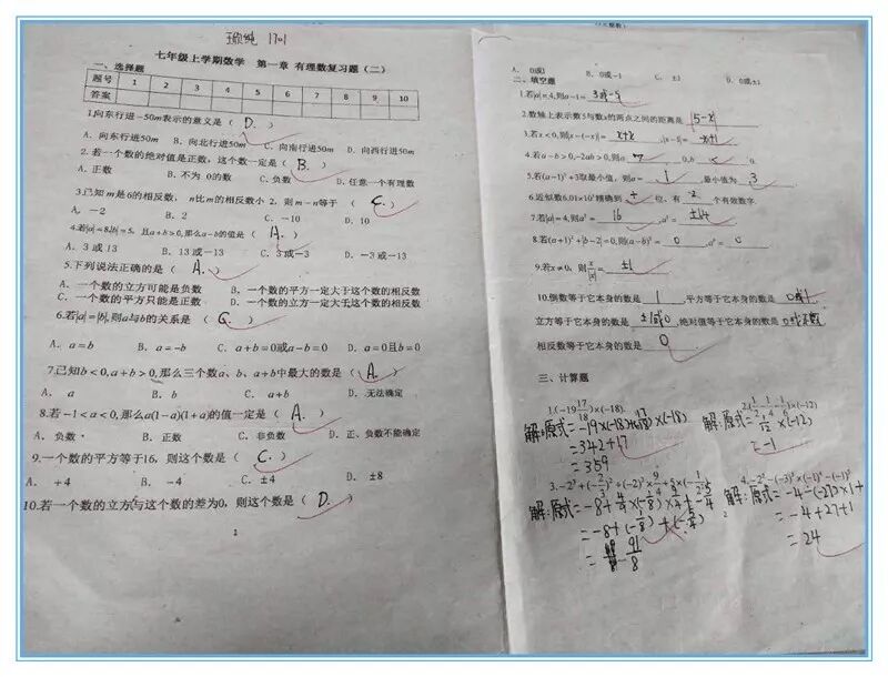 1707班 试卷:钟昊涛、张婉晴、付凌音、欧阳蘭、刘安琪、尚俊奕
