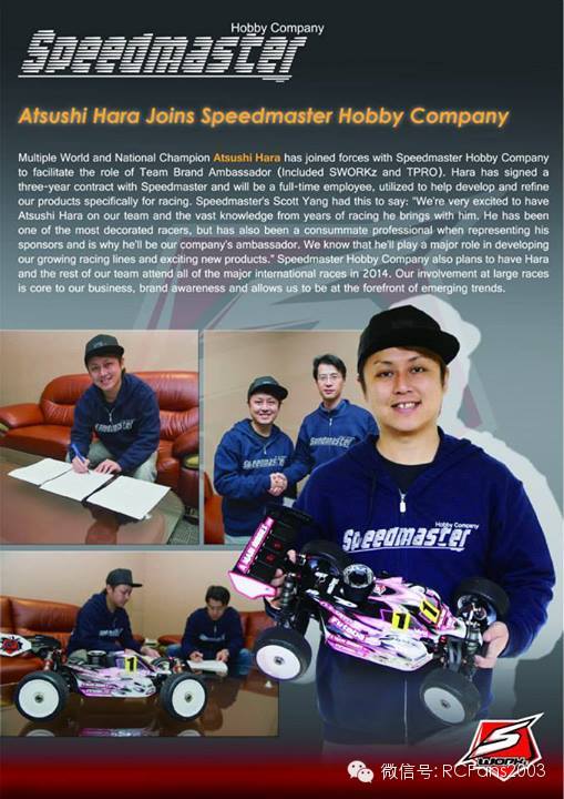 具有多个世界冠军头衔,被誉为全能车手的Atsushi Hara在中国农历新年期间决定去向。首先来自中国的好盈Hobbywing确认和Hara签约,Hara将使用好盈电子变速器参加2014各大赛事,包括世界赛!
