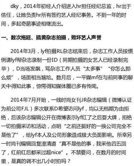 另外小懂注意到,前一次粉丝“讨伐”董可妍列举出来的“罪名”、基本上跟现在手撕杨迦茵这次的大同小异,都是耍大牌、态度恶劣、处理不好媒体关系、破坏广告合约、败坏李易峰个人名誉、对粉丝造成伤害等等,出现这种情况要么是李易峰这几次的经纪团队都是出奇一致的渣,要么就是粉丝们为了维护爱豆有点“受迫害妄想症”、太吹毛求疵了。