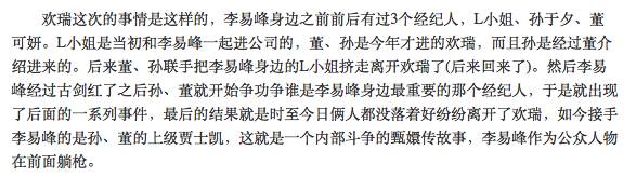 不过呢,前年的事件小懂记得当时也有一种说法是:李易峰的工作人员上演了一场内部“甄嬛传”,包括爆料的长微博都是由内部人士策划的,并不是粉丝自发撰写,所以粉丝只是被她们拿来当枪使而已,只不过最终的结果是两败俱伤。