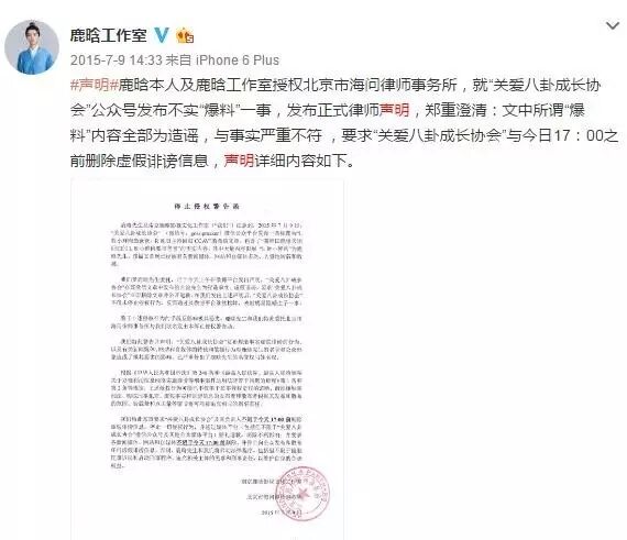 最近几位人气正旺的小鲜肉都或多或少有些负面传闻,不过幕后团队的处理方式就有好有坏了。以前“关爱八卦成长协会”发过关于从韩国偶像团体中回国的人气最高的L姓小鲜肉当了爸爸的消息,好多人都猜测是鹿晗。当时鹿晗的团队反应real迅速,马上发声明否认。虽然有点主动对号入座的嫌疑,不过也确实一定程度上遏制住了绯闻的传播,最关键的是言语笃定,语气强硬,给粉丝吃了一颗大大的定心丸,对于要靠粉丝力量持续发展的小鲜肉来说,这就够啦。