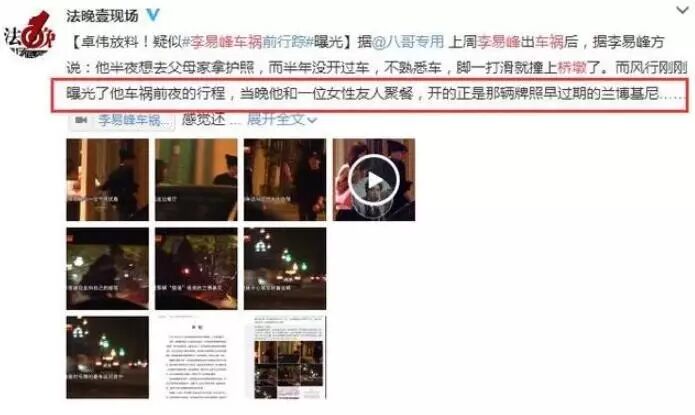 事故发生之后经纪人的反应也并不明智,她在声明里提到“因为有现场施工人员围观拍照,为了避免不必要麻烦,就先行回家”,第二天又安排李易峰照常飞去国外。但这种做法很明显不符合法律规定,直接导致李易峰因为交通事故逃逸和驾驶未悬挂号牌的机动车上路,被记了24分。