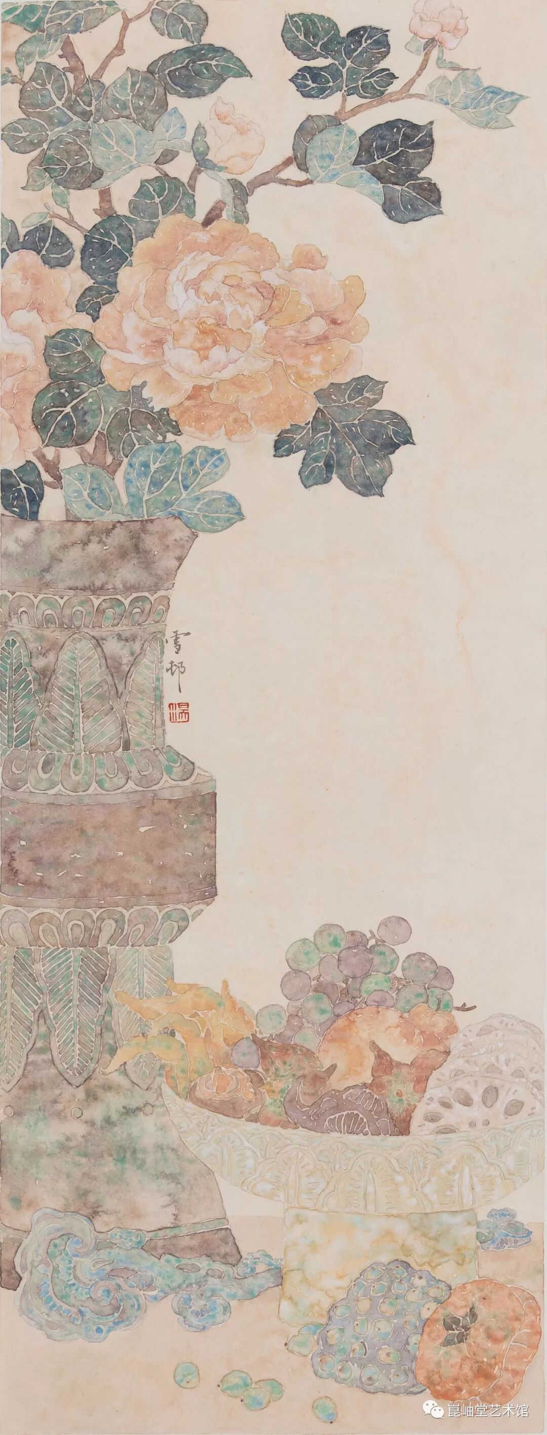 画风工致,追求宋人格物致精的精神,可谓以意笔中带有工笔之意。他往往会赋予所绘物象一种简显的雅韵,其主攻的人物画作更是有种天然的海派气息,赏其作品如闻其声,如见其人,给予人一种诗性的惬意。