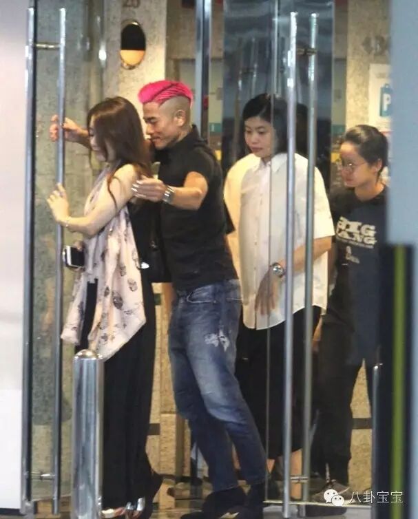 天王一边与朋友说再见,一边不忘伸出左手推门,让女友出去。