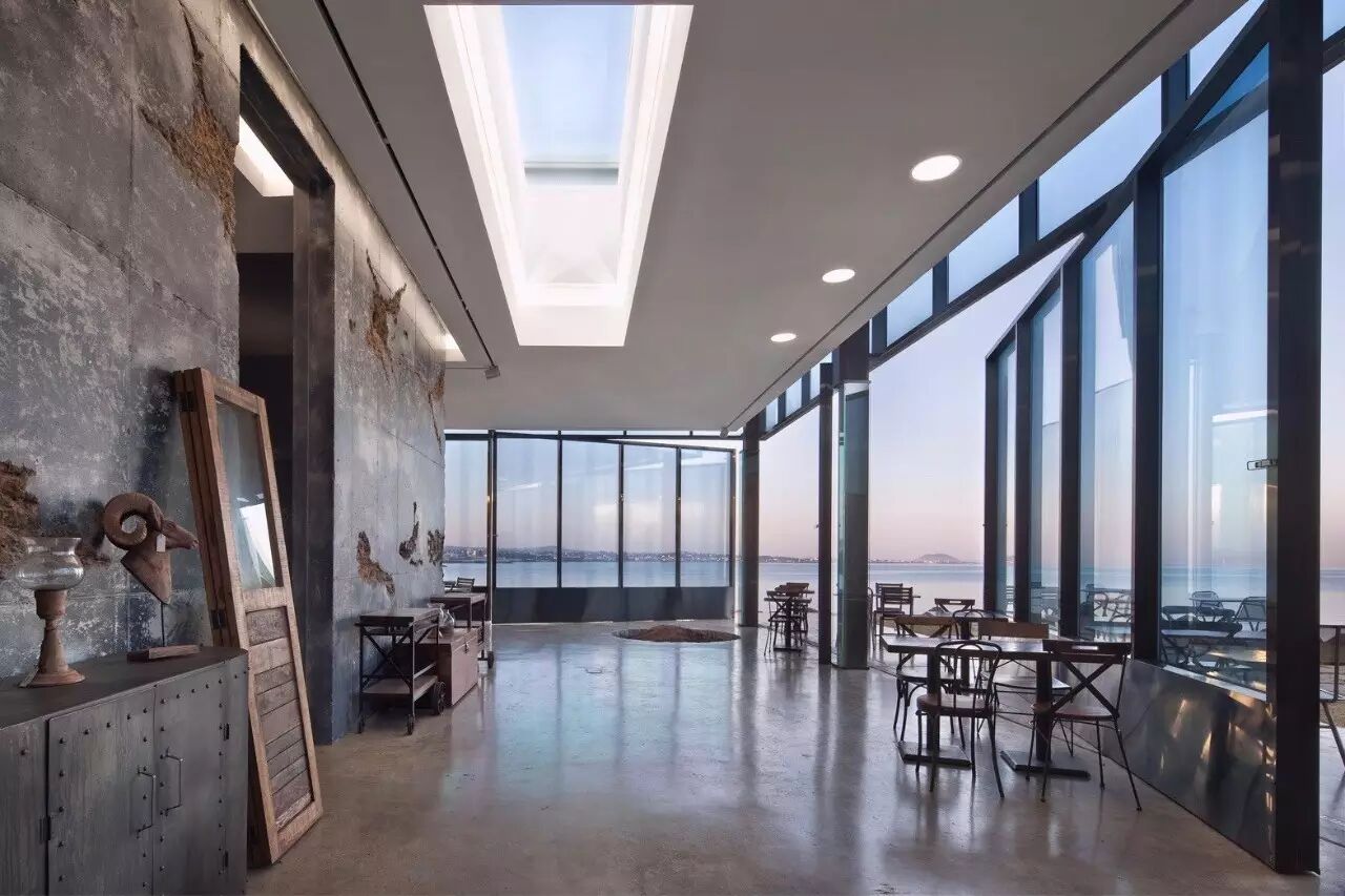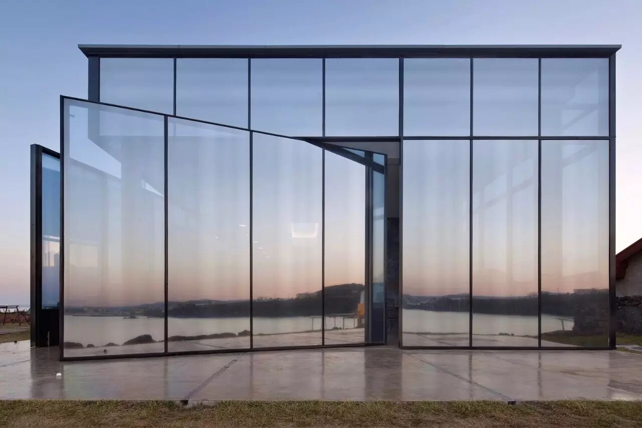 他请到韩国设计工作室Platform_a并亲自参与到创意设计当中,200平方米的空间全部由通体玻璃构成,三面全开的玻璃墙让270°无敌海景尽收眼底,玻璃的选材十分别致,外部镜面可以反射上周边的美景,从远处看像一幅3D立体风景图。从室内看出去是普通玻璃窗,但在室外看则成了镜子。