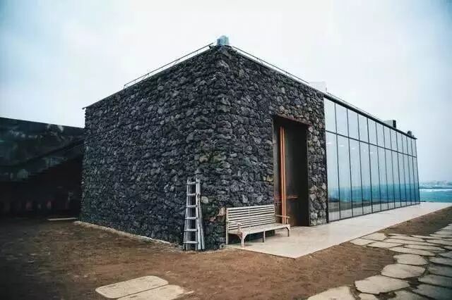 设计师将外部环境映射到室内中,那些济州岛的美丽景色,像石墙、火山沙和玄武岩等都被充分的利用了起来。