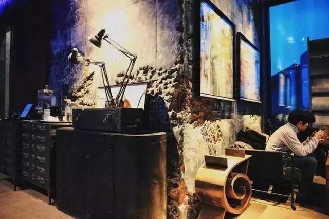 楼梯采用废弃钢板建成,保持了统一的低调风格,室内也延续了这种风格,用火山岩、玄武岩、老木头做了柜台、墙面和其他家具,却又能从天花板、灯光中看到现代的材料和设计。