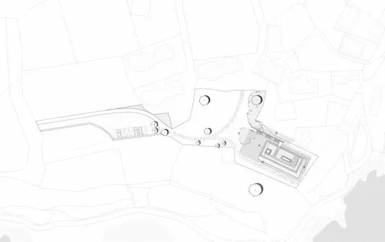 该建筑依据场地的形状与地形进行布局,因此将建筑沿斜坡设计成了一个盒子状的小型体量。这个设计精致的体量通过由混凝土和玻璃打造出一个看上去比较中性的建筑,并以此来吸收现场的景观特色。
