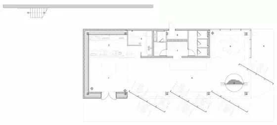 通过将南面的地面挖空会形成一种唤醒原始自然的感觉,并作为一种介质接受其不断变化的样式,避免了对建筑形成的猜测,咖啡馆通过空间的各种空隙,将自然与建筑和谐的结合在了一起。