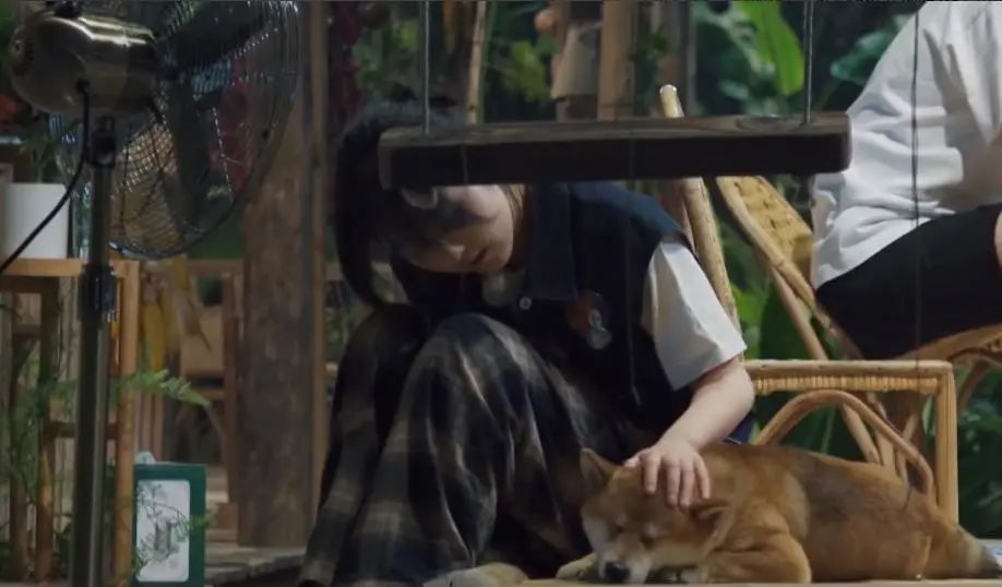 张子枫非常敏锐地察觉到了狗狗的心情不好,走过去轻轻地摸它的头并安慰道: