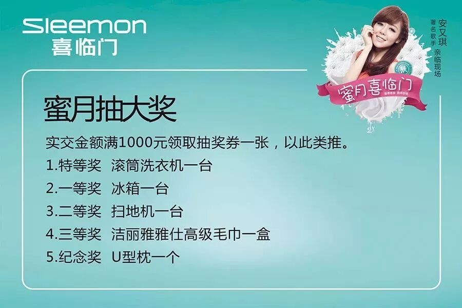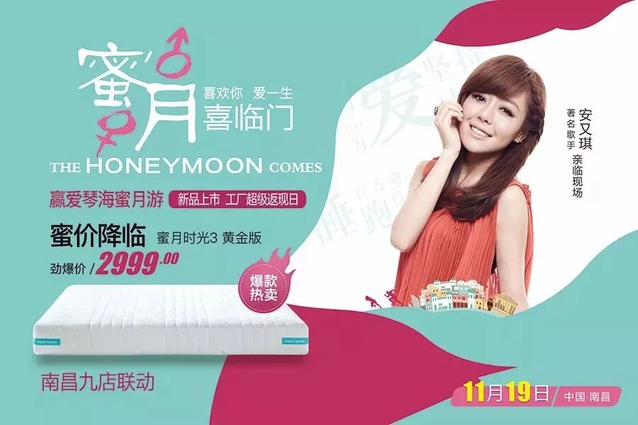 2017年11月19日13点,鹿鼎国际家居携手喜临门特邀著名歌手安又琪亲临现场,与您共享一场蜜月狂欢盛宴!