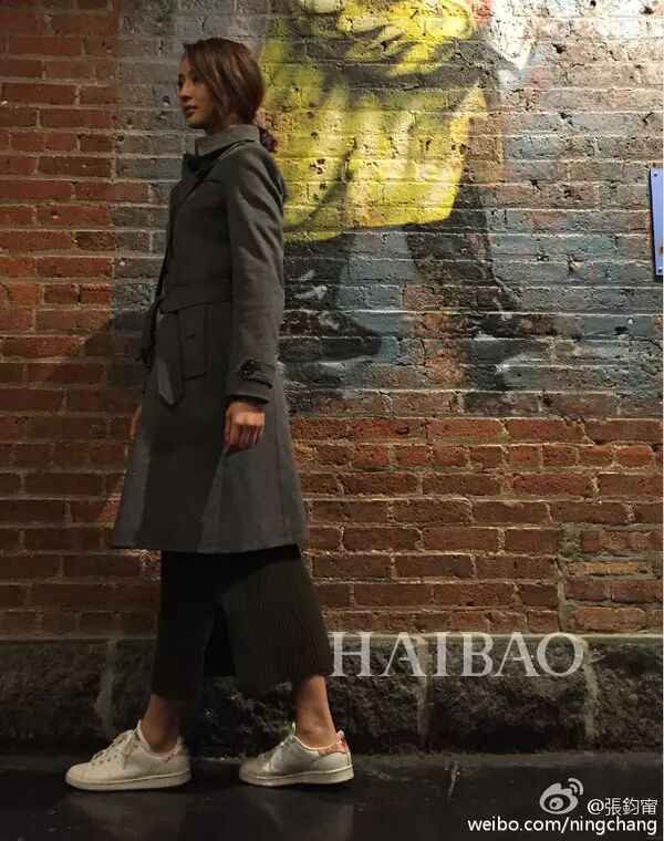 张钧甯的气质不是盖的,灰色大衣配一双Adidas Stan Smith白球鞋就很赞!