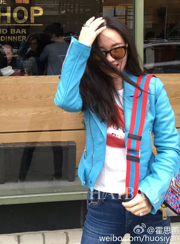 霍思燕的私服海豹君只想说一句:这个蓝色的皮衣真是不太好Hold住!