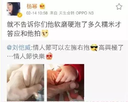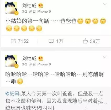 刘恺威杨幂的微博互动,觉得他们真很恩爱。幸福就是平平淡淡,有爱的结晶小糯米...女神欧尼我要开虐汪汪汪咯