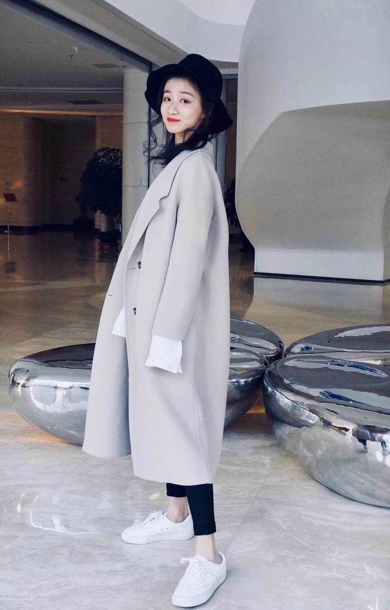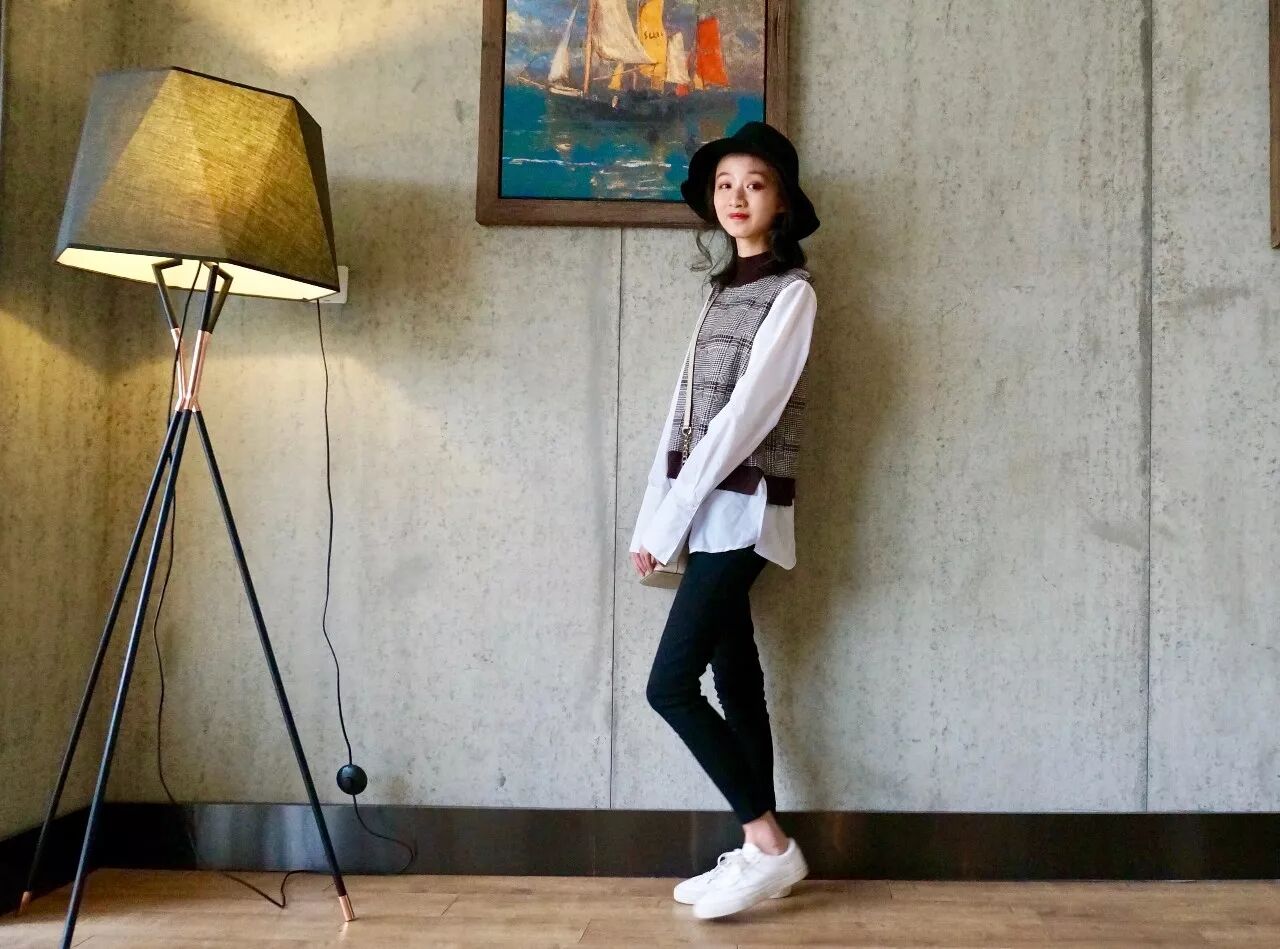 假两件的格子小毛衣搭配九分小黑裤显腿长,也不至于让毛衣很单调。套上粉色简约版大衣,甜美又不会让瘦小的她被衣服吃掉,看起来就是小仙女本仙。