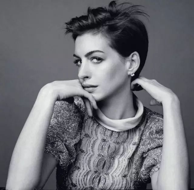 安妮海瑟薇长发的时候虽然并不丑,但是她自从剪了短发以后身上有了一种灵气,头发越剪越短的她气场越来越强大!(据说剪头发容易上瘾,你也是嘛?)照片中安妮满脸的不羁却依旧不失女人味。如果你的脸上线条偏硬朗也可以尝试这种发型!