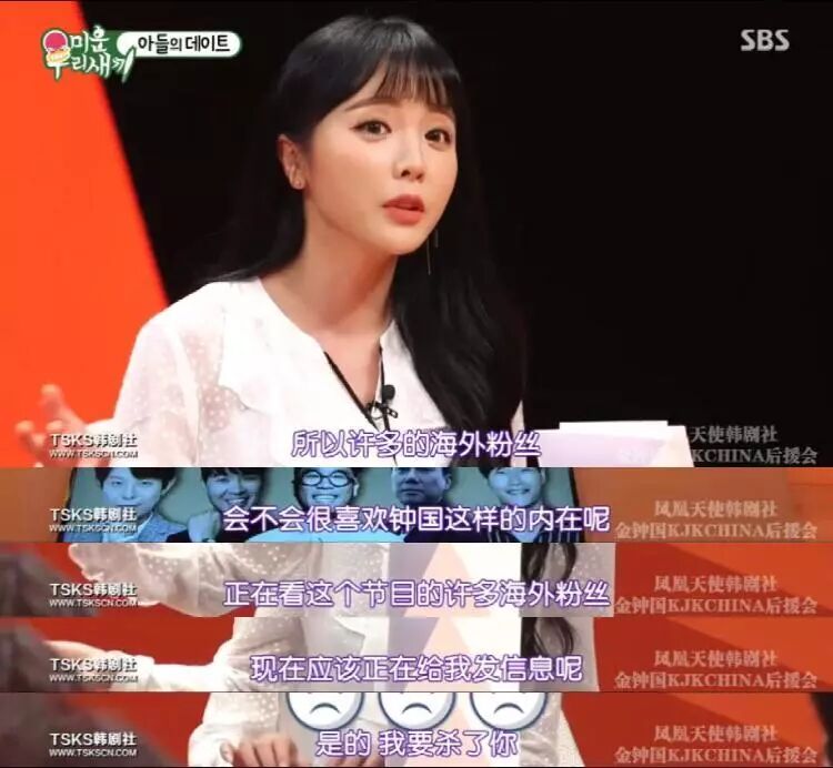 后来间隙还补了句:粉丝们喜欢这种有魅力的金钟国,顺便还揶揄了自己一把。
