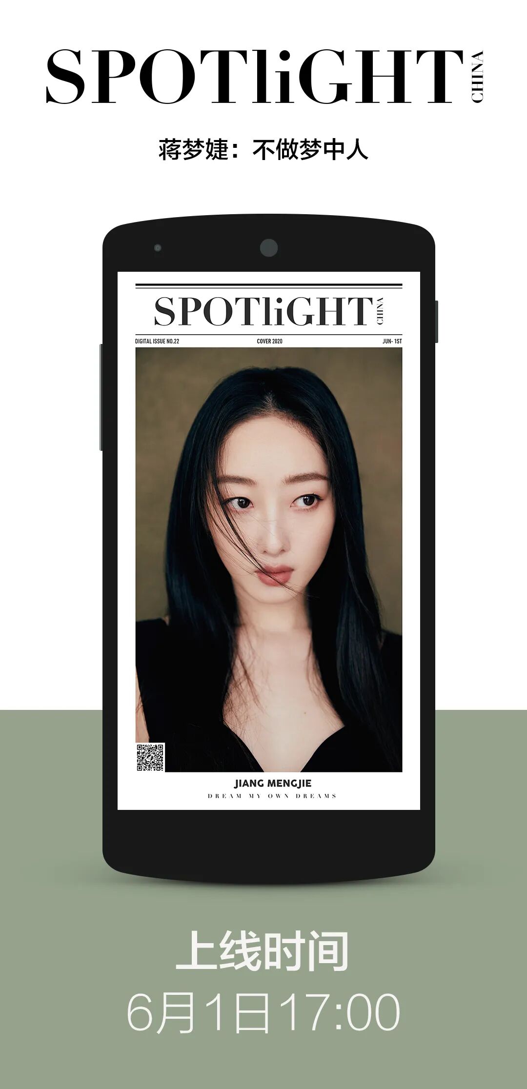 SPOTLIGHT电子刊「蒋梦婕:不做梦中人」将在2020年6月1日周一下午17:00正式上线!风格多变的时尚大片,如梦似幻的时尚视频,以及闲谈式的独家专访,在时光的倒影中,讲述属于蒋梦婕的人生故事。