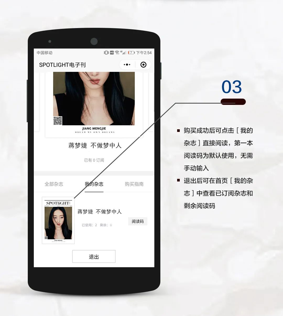 电子刊销量排行榜前十名的粉丝将获得我们准备的蒋梦婕珍藏实体写真画报,前三名粉丝还将获得亲笔签名拍立得等福利,更多精彩尽在SPOTLIGHT电子刊!
