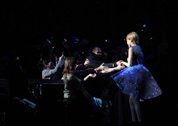 她爱护歌迷,在某年云顶个人巡回演唱会上,保安强行推撞热情的歌迷,容祖儿还在演唱中途对保安说“唔好推佢地!(别推他们!)”同时也对歌迷说:“虽然我系一个女仔,但我会尽我嘅能力去保护你地!(虽然我是一个女生,但我会尽我的能力保护你们!)”