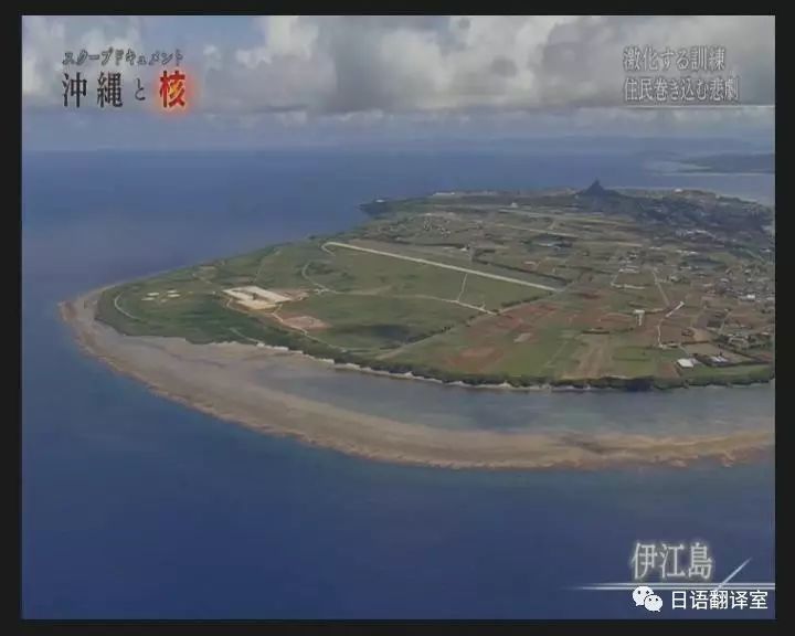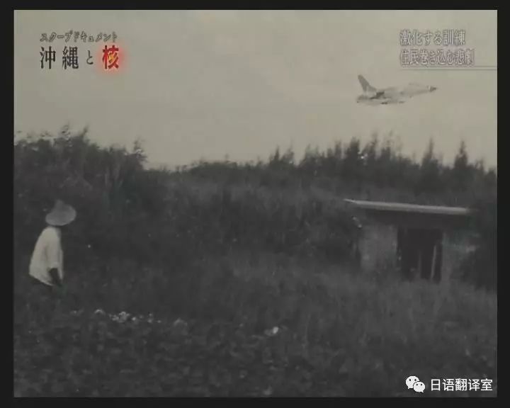 采访中发现了这样的悲剧,由于核集中在冲绳,岛民被卷入其中。这是美军征用土地的伊江岛,在爆破场地,那段期间,每天进行这激烈的低空投掷训练。这张模糊的照片是当时伊江岛。飞机就在村落的屋顶上掠过。