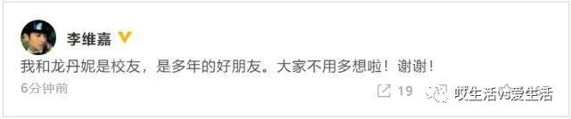 李维嘉表示和龙丹妮只是校友以及多年的好友关系。