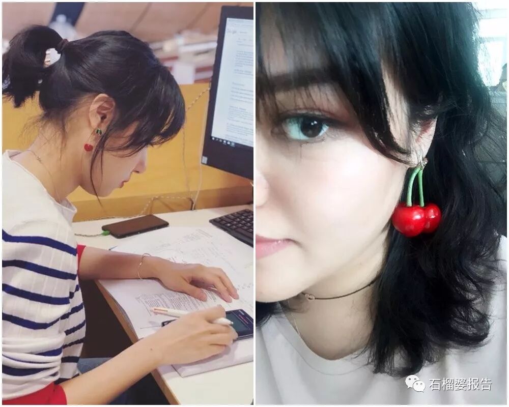 读者赵卷卷戴着Kate Spade耳环,读者鎏柳六戴着真樱桃……