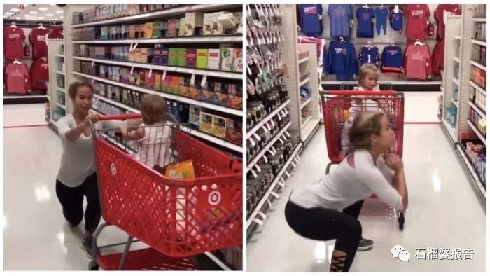 去年10月,Cooper带着宝宝逛超市,录了一段在超市里健身的视频。