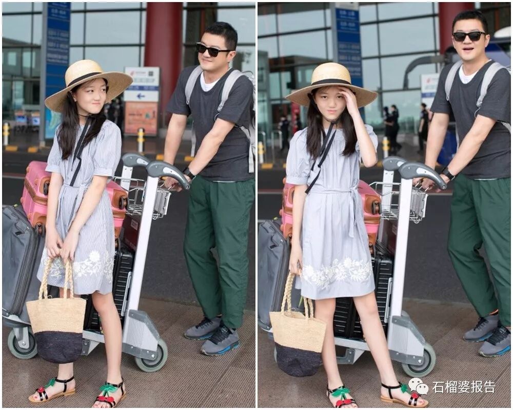 这是王菲12岁的女儿李嫣今天在机场,和爸爸李亚鹏一起去巴黎。