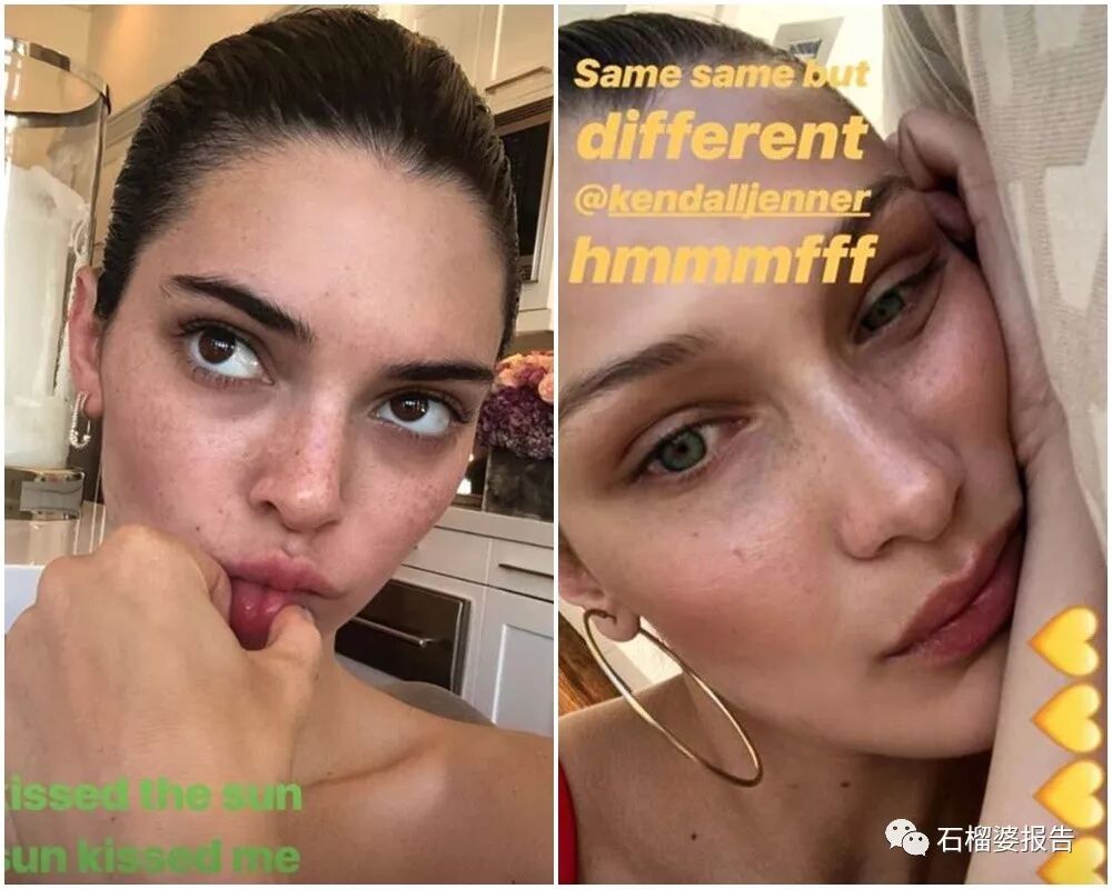 5,金小妹晒了一张无底妆自拍,闺蜜Bella Hadid跟上。
