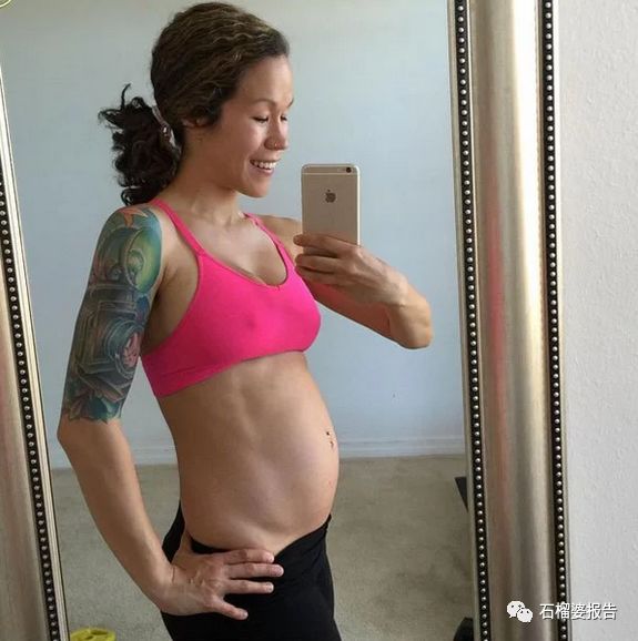 《人物》周刊网站转了这张照片,网友骂声一片,说她为了练腹肌不惜阻碍胎儿发育。